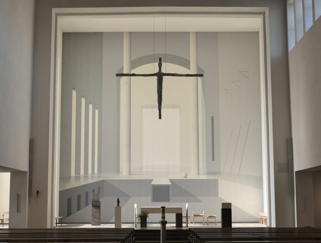 Im Rahmen der Umgestaltung und Innenrenovierung unserer Kirche im Jahre 1995 durch die Architekten Bertram Perlia und Jacob Kierig wurde der Altarraum neu gestaltet. Professor Ben Willikens konnte für die Gestaltung des Altarbildes, beziehungsweise der gesamten Westwand gewonnen werden.